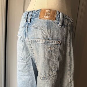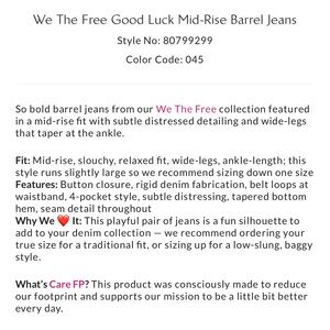 Free People Good Luck Mid-Rise Barrel Jeans in Barnyard Blue