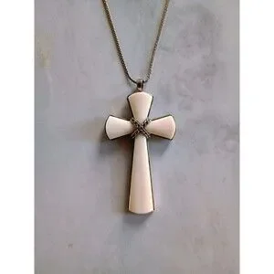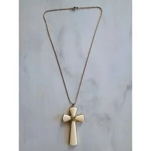 Vtg Estate Avon Beige Cross Necklace Religious Pendant