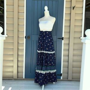 RARE 1970's Gunnies Sax Skirt with Lace Detail, Hippie Bohemian Youth Size 5