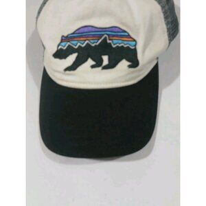 Patagonia Back For Good Trucker Hat Snapback. One Size. Gray with a bear print. Active, Outdoors, Fishing, Hiking. In nice, preowned condition. Small spot on brim.