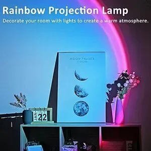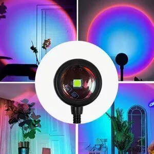 The NEW RGB Sunset Projector Light in black with a remote is a plug-in light perfect for creating a warm and cozy ambiance in your home. With LED lighting technology and a USB power source, this free-standing projector light is easy to set up and use. The light sensor ensures that it activates automatically when the room is dark, while the remote allows you to adjust the settings to your liking. Whethe