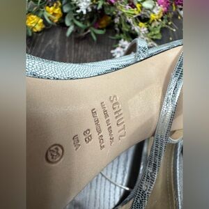 Schutz Altina Strappy Metallic Leather Sandals stiletto heel ankle strap