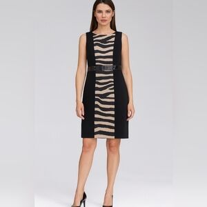 New TAHARI ARTHUR S LEVINE Sleeveless Black/Tan Animal Print Mini Dress Size 12
