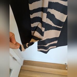 This Tahari Arthur S Levine sleeveless black and tan animal print mini dress in size 12 is a stylish and versatile piece perfect for various occasions. Made from a comfortable polyester spandex blend, the knee-length dress features a round neck, zip closure, and faux leather waistband accents. The dress is machine washable and suitable for travel, weddings, parties, and more. Its preppy, colorful, and classic style makes it a great option for both casual and formal events, adding a touch of luxury and sophistication to your wardrobe.