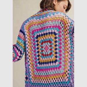 Embrace vibrant style with this colorful crochet cardigan featuring a playful fringe. Perfect for adding a pop of color to any outfit.