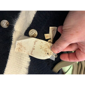 NWT Size Large Hem & Thread Cardigan. Cardigan has black and white stripes. It is both soft and has a fuzzy feel. Could be dressed up or down.