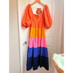 Farm Rio Tiered Colorblock Maxi Dress Medium Paris Summer Rainbow Sundress