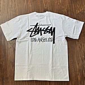 100% Authentic Stussy Los Angeles Exclusive White T-Shirt cut tag sample
