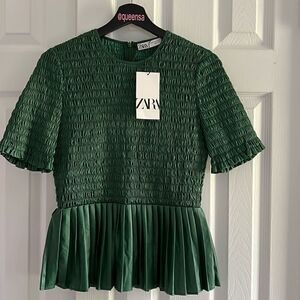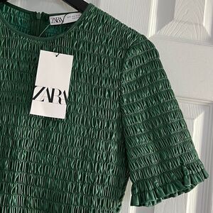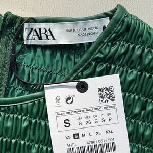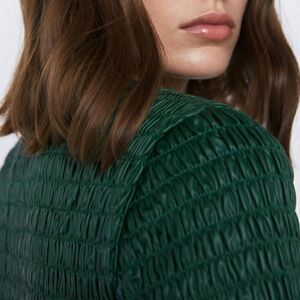 Zara Ruched Faux Leather Top in Green