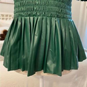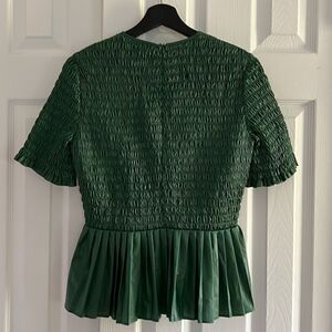 Zara Ruched Faux Leather Holiday Top in Green