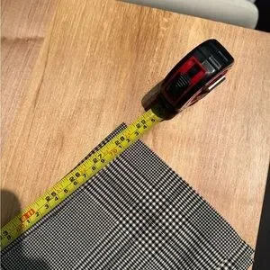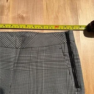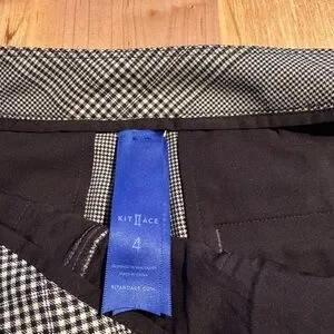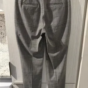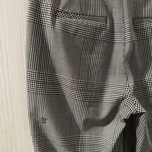 Stylish black and white checkered pants. Features a blue label detail. Cashmere wool spandex blend for a little stretch in your work pant.