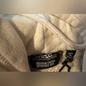 Cozy cream jacket with a hood. Features a soft texture and drawstring detail. Barely worn in great condition and very warm material.