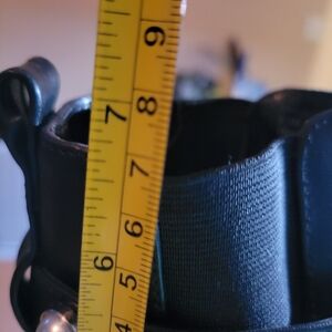 These girls black ankle boots with pearl studded adjustable straps are in a size 7. The studded accents give them a trendy and edgy look, ideal for those who appreciate a biker or punk aesthetic. These boots offer both comfort and style for young girls looking to make a statement with their footwear.