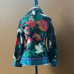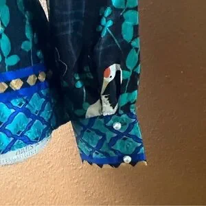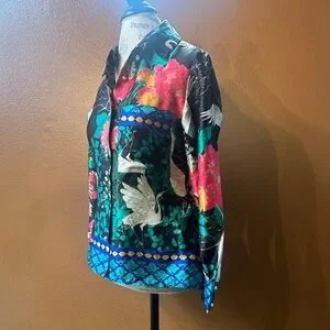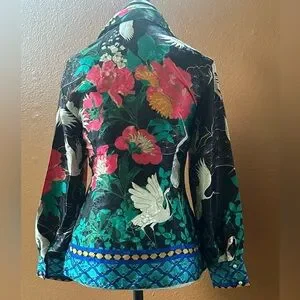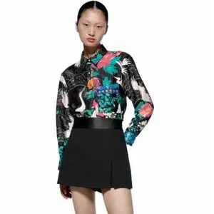 Zara Long Sleeve Flowy Satin Like Blouse With Floral And Crane Print