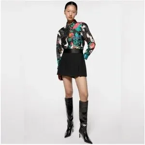 Zara Flowy Blouse with Floral And Crane Print Size XS Excellent Condition!