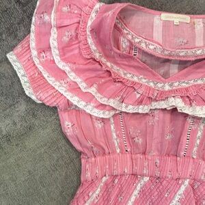 LoveShackFancy Natalia Mini Dress – Pink Floral Lace Ruffle – Size M