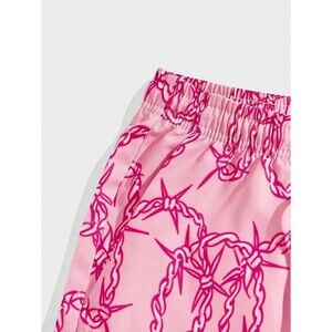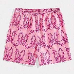 CozyEase Men's Letter Gym Shorts Pink Size L Graphic Print Drawstring Waist NEW