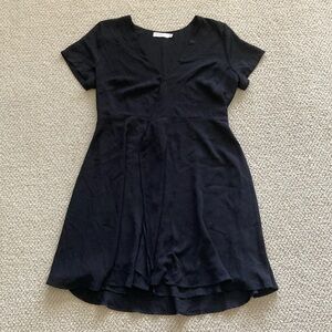 Lush Black Wrap Dress Midi Size Large V-Neck Flow Knee Length LBD Like New