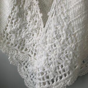Vintage hand made crochet extra large triangular shawl with beautiful detail and scalloped edges. Off white / cream color. Bohemian style.