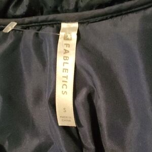 Don't let low temps stop you. Get out and move with this lightweight jacket that offers the perfect amount of warmth and ease of movement. Breathable. Water Repellent Elegant navy jacket by Fabletics. Ideal for versatile wear. Zippered sleeves and pockets.