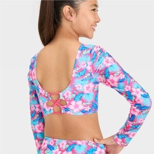 art class Pink and Blue Floral Kids Swim Rashguard