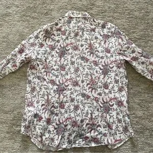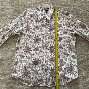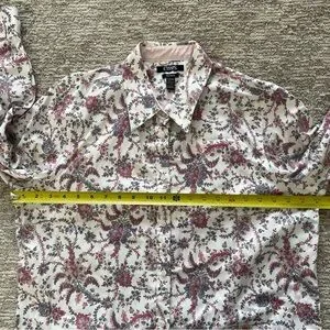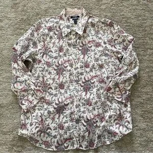 Chaps Womens XL No Iron Button Up Shirt Pink Floral 3/4 Sleeve Blouse Cotton