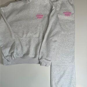 White Fox Cozy gray hoodie and sweatpants set with pink lettering. Perfect for casual wear.Never Worn