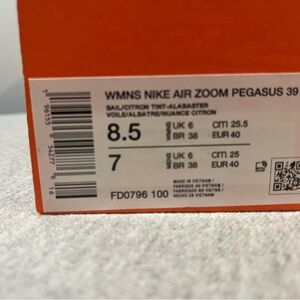 Nike Air Zoom Pegasus 39 Sail/Citron Tint Women’s Shoe Size 8.5 FD0796-100