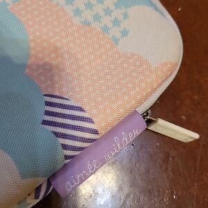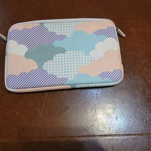 Stylish laptop sleeve with a cloud pattern. Features pastel colors for a unique look.
