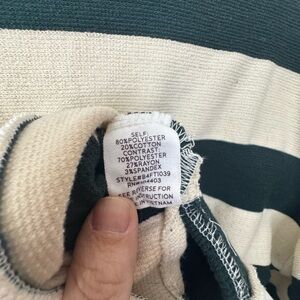 Hunter green and cream rugby striped polo top. Textured fabric. Some light pilling but otherwise good condition.