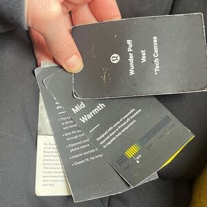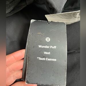 Lululemon wunder puff vest with tech canvas. Tags still attached . Some very faint chalk marks from storage- see pictured. Have not washed it yet, I’m very confident these would come out.
