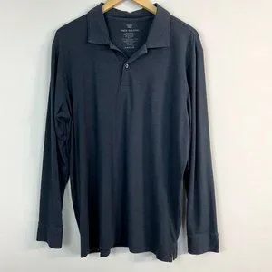 Mack Weldon Polo Shirt Men XL Gray Intrepid Long Sleeve Pima Cotton X-Large