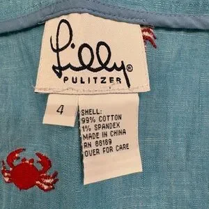 Lilly Pulitzer Vintage Blue Mini Skirt With Red Crabs Snap Closure Size 4