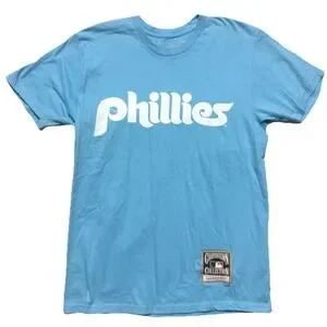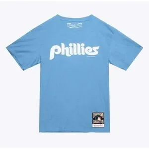 Mitchell & Ness Phillies T-Shirt Cooperstown Collection Blue Retro Tee Shirt M