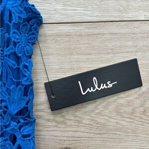 Chic and stylish mini dress. Features intricate lace design. Perfect for any event. Gorgeous open back dress. Blue lace dress from Lulus. NWT sapphire blue dress.
