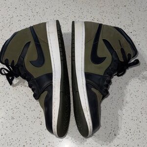 Stylish Nike high-tops in olive and black. Perfect for casual wear.
