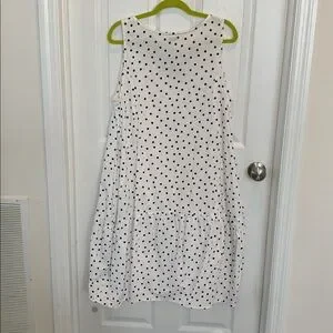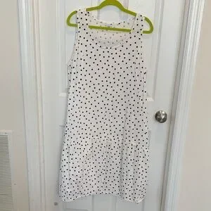 Chic and comfortable, this sleeveless seersucker polka dot dress is perfect for any occasion. The classic black and white design offers timeless style.