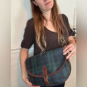 Polo Ralph Lauren Leather-Trimmed Canvas Saddle Shoulder Bag Vintage Authentic