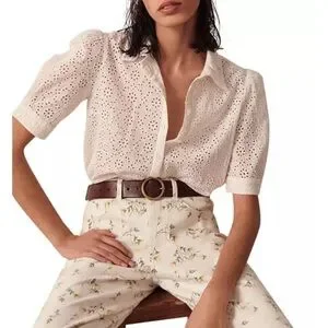Ba&sh Sparro Cotton Eyelet Shirt Small Feminine