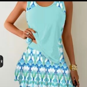 NWT Stay stylish and comfortable with this aqua tankini swim set featuring a vibrant blue pattern. Perfect for casual outings or a day at the beach.