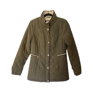 Nautica Women's Olive Green Quilted Jacket Elbow Patch Size Medium Polyester