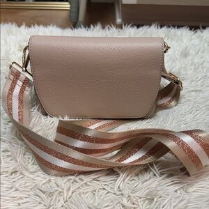 This elegant beige crossbody bag is perfect for any occasion. Its stylish design and neutral color make it a versatile accessory for your wardrobe.