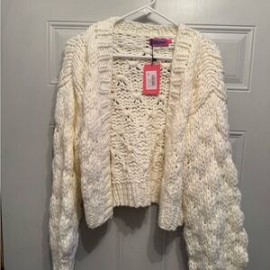 EDIKTED NWT Chunky open knitted front cardigan cream Sz Small