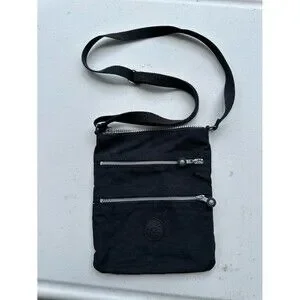 Kipling Keiko Black Crinkled Nylon Adjustable Travel Slim Crossbody Bag