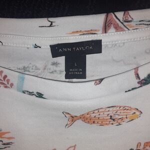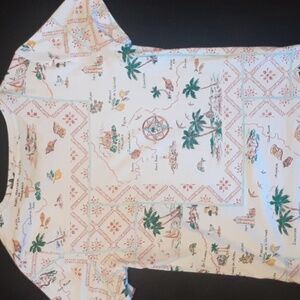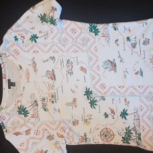 Nautical-themed tee with ships and palm trees. Soft fabric . Short sleeves, Pre-loved but still in excellent condition. Sz L.