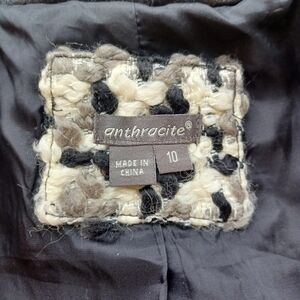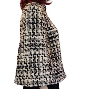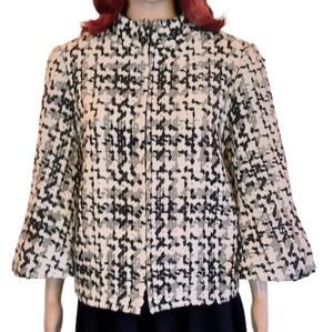 Thick nubby tweed jacket with pockets and bell sleeves. Nice for office or casual wear.