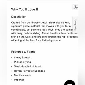 Elegant black pull-on flare pants. Perfect for any occasion. Stylish and super comfortable.