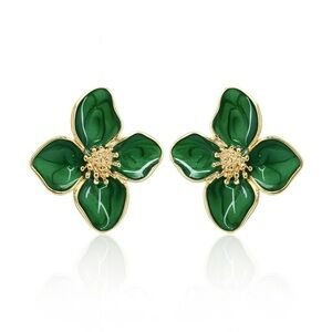 Chic floral earrings with a vibrant green design. Accented with gold details. Ideal for stylish looks.