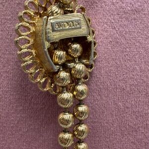 Signed Avon on the reverse, this bolo necklace is a statement accessory that blends bohemian charm with 1970s designer sophistication. Perfect for collectors of vintage Avon, lovers of Peking glass, or anyone who appreciates unique, adjustable statement jewelry.
