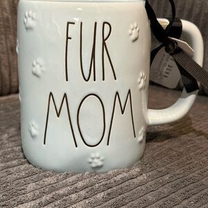 Charming Rae Dunn mug for fur moms. Features embossed paw prints. Ideal for pet lovers.